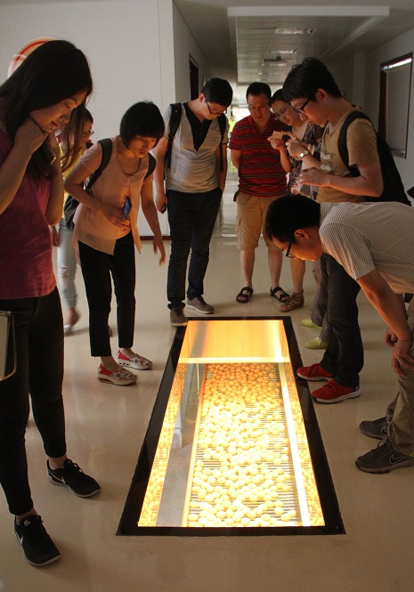 到达目的地后,北航MBA师生首先进行进场前的全身消毒,这一环节体现出正大集团对基地养殖环境卫生的严格把控。随后,进入视野的就是宽大整齐的现代化厂房车间。学生们跟随公司的讲解员一起走进参观走廊,了解平谷养殖基地建厂历史、产品与未来发展。讲解员对养殖基地每个生产环节的严格制造标准和检验流程进行了介绍,向学生展现了企业对消费者的负责态度。同学们对正大车间内一尘不染的生产环境、先进高效的机器设备、有条不紊的生产流水线纷纷称赞,还不时地向讲解员进行咨询请教。