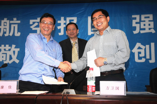 在热烈的掌声中,在与会人员的共同见证下,北航beat365亚洲版官网副院长方卫国教授与中航工业贵航股份副总经理廖佳共同签署联合培养工程硕士协议。这标志着双方将齐心协力,不断深化校企合作,实现学校教育与企业需要的无缝对接,为企业培养复合型、应用型工程管理人才。