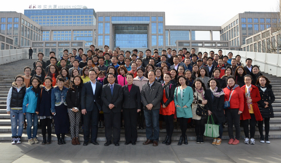 开学典礼结束后,老师和同学们一同来到新主楼大台阶合影留念,老师和同学们灿烂的笑容定格在阳光明媚的春天里。
