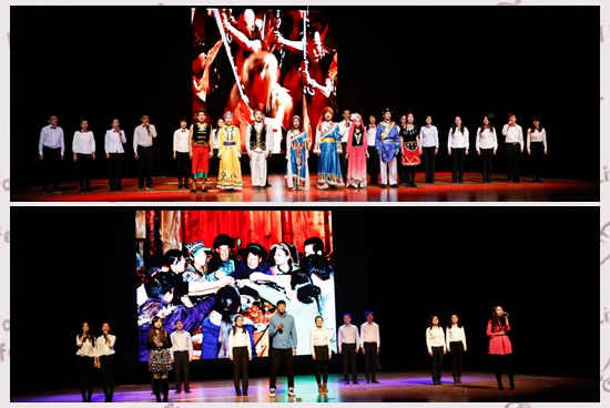 践行社会主义核心价值观是从党和国家命运的战略高度提出的命题。一曲《再唱山歌给党听》由衣萌老师领唱,MBA和普研学生合作的藏族舞蹈抒发了师生诚挚的心声,向党和祖国献礼。一曲《黄河大合唱》以崭新的表现形式,将大家重温革命前辈浴血为国的光荣历史,演绎着新时代青年对祖国母亲的爱。配乐诗朗诵《伟大的中国梦》在悠扬高雅的小提琴曲穿行,慷慨激昂的朗诵词穿透耳畔,感染了全场师生的心灵。小品《情援西藏》以真实故事为背景,生动讲述了援藏干部舍弃家庭亲情和内地的工作生活环境,用理想和青春支援建设雪域高原。