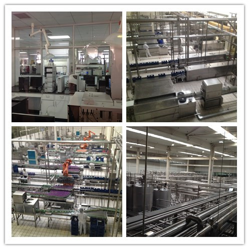 下午14:30大家乘坐大巴来到位于北京瀛海工业园区的北京三元食品有限公司。负责接待大家的工作人员已经等候在门口,在工作人员的带领下大家首先来到一层大厅,高高耸起的首农产品金字塔立刻引起了大家的兴趣,它不仅体现了三元是首农集团下属的自主品牌,同时也展示了首农集团旗下品目繁多、种类齐全的产品体系。接着大家跟随讲解员来到奶源检测中心,据了解为保证三元牛奶的优质奶供应,奶源要经过近50项指标的严格检测。随后大家进入长长的牛奶产品生产线,站在二层的走廊上透过玻璃窗可俯视生产车间。大家先后参观了现代化奶业生产线、自动化洗瓶生产线、分拣包装生产线等,车间环境干净整洁、井然有序,其生产线自动化效率很高,整个生产流程几乎全靠自动化设备。大家一边参观一边聆听讲解员耐心介绍牛奶生产的五个基本环节:收奶环节、预处理环节、标准化生产环节、杀菌消毒环节和包装罐装环节。穿过车间大家来到本次参观的最后一站三元文化体验馆,了解到三元经历了起步创业、快速发展个现代奶业三个历史阶段,始终将爱心、良心和责任心作为企业的核心价值观,成为中国最受尊敬的乳品品牌。