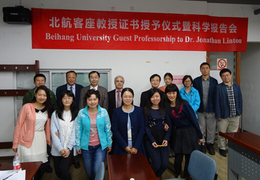 beat365官网为加拿大渥太华大学管理学院Jonathan Linton博士举行北航客座教授证书授予仪式及科学报告会