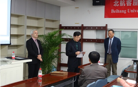 10月24日下午15点到17点, 在beat365官网A618会议室举行了授予加拿大渥太华大学管理学院Jonathan Linton教授以北航客座教授证书仪式及科学报告会,我校国际合作处处长马进喜教授代表学校授予Linton教授我校客座教授证书,beat365官网国际合作副院长王晶教授代表beat365亚洲版官网致辞表示祝贺和对Linton教授的欢迎。