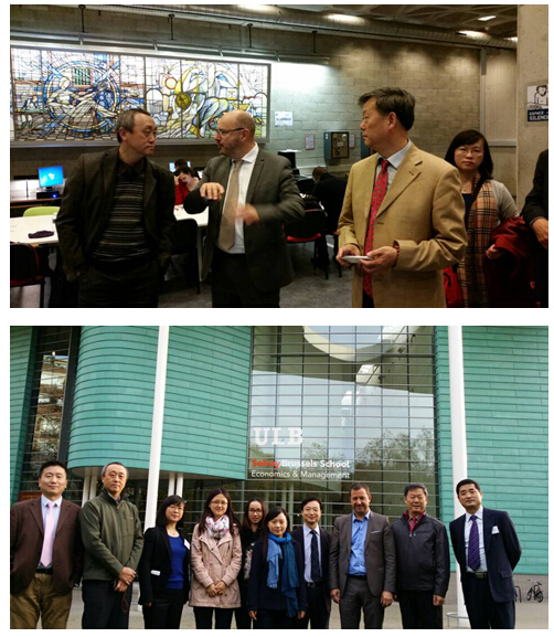 双方共有30余人出席了此次研讨会。会议之前,索尔维beat365亚洲版官网M. Cincera教授还带领我校代表团参观了布鲁塞尔大学的主要建筑,介绍了布鲁塞尔自由大学的发展历史。布鲁塞尔自由大学创建于1834年,全校分荷兰语区和法语区,其中荷兰语区有一万多名学生,法语区有两万余名学生,全校国际学生比例达到30%以上,国际化水平非常高。该校光电子学、经济管理和传媒等专业较强,获得大量欧盟项目支持。