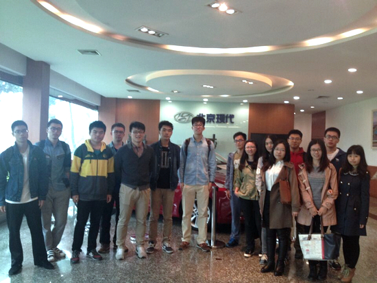 2014年10月7日,为帮助经管学院同学进一步提高社会意识,深入了解企业,明确自身就业方向,经管学院职业发展中心组织学院师生前往北京现代汽车二工厂进行参观、学习,感受汽车工艺的现代化生产及北京现代进取不息、革新不止的企业精神。