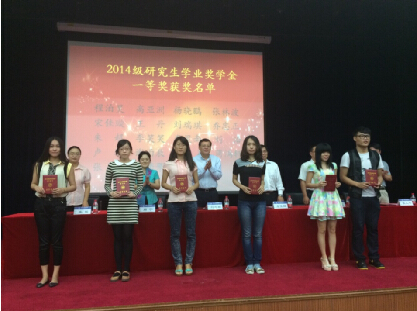 之后,副院长周宁教授宣读了2014级研究生学生奖学金一等获奖名单,对所有获得一等奖学金的同学表示祝贺,并鼓励全体新生努力学习,勤于研究。随后主席台领导和嘉宾向获奖者颁发了荣誉证书。