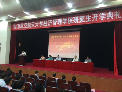 9月13日下午,北航beat365亚洲版官网开学典礼在学校学术交流中心隆重举行。beat365亚洲版官网党委书记刘志新教授、副院长方卫国教授、副院长周宁教授以及教师代表张人千教授出席开学典礼并就坐主席台,经管学院开学典礼由研究生指导主任牟晖老师主持。同时出席典礼的老师还包括:信息系统系主任闪四清教授、数量经济与商务统计系郑海涛副教授、领导力与组织管理系武欣副教授、管理科学与工程系王玉灵副教授、MBA中心副主任李亚帅老师、EMBA中心副主任胡鹤老师、学生工作办公室主任衣萌老师。