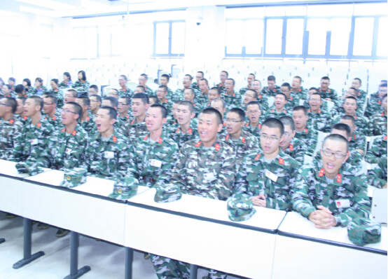 新生军训学员代表谈对军训感悟,每位学员的发言都能博得老师与同学们热情的掌声。