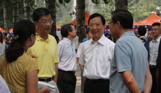 上午10时,校党委书记胡凌云、校长怀进鹏在研究生院常务副院长黄海军、管理处处长雷晓锋等学校有关职能部门负责人的陪同下,来到学院新生报到现场视察迎新工作。胡凌云书记、怀进鹏校长亲切慰问了学院在迎新一线工作的老师和志愿者,认真听取了相关情况的汇报,与新生和家长进行亲切交流。学院按照学校统一部署安排,先后制作《2014年北航经管学院研究生迎新专刊》、职业发展中心宣传刊、入学教育时间安排表等特色的资料袋,为研究生新生入学提供便利,学校领导对经管学院细致高效的迎新工作给予肯定和表扬