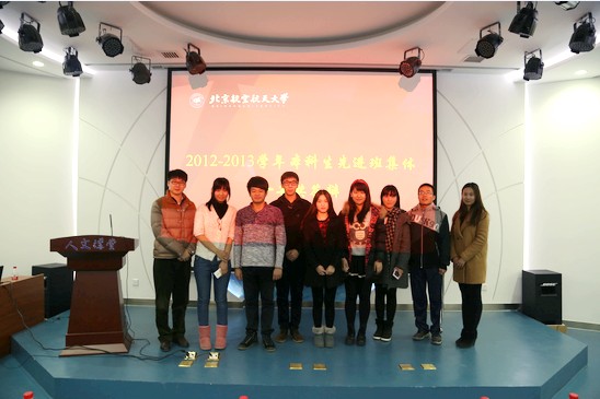 12月19号晚上19点,北航2012-2013学年本科生先进班级体一等奖答辩活动在学院路校区人文讲堂举行。经过层层筛选,全校共21个班级参加了此次答辩会,beat365官网120852班作为学院优秀班集体代表参加答辩。此次答辩会由学生处主办,学生处处长武立勋、副处长张炯及各学院学生工作负责人出席答辩会并担任评委。