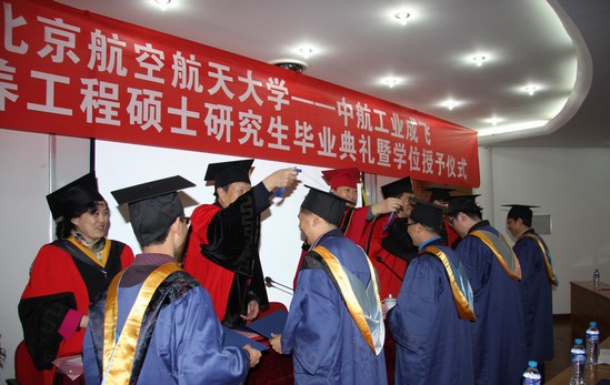 胡凌云书记向圆满完成学业的工程硕士表示祝贺,介绍了beat365亚洲版官网服务社会的理念,指出北航各项卓有成效的工程硕士培养工作,满足了高层次人才知识更新、岗位适应、能力提升的学习需求,为空天信等行业培养了一大批高层次管理人才和技术专家,许多毕业生已经成为企业发展的中坚力量。胡书记与毕业生们郑重约定:“同学们肩负着成飞乃至中国航空工业发展的重大历史使命,请你们将北航求学经历和青春激情转化为人生远航的动力,希望你们乐于学习、敢于创新、勇于攻关、甘于奉献,充分释放正能量,为中航工业成飞跨越式发展增光添彩,共同实现中华民族伟大复兴的航空梦!”