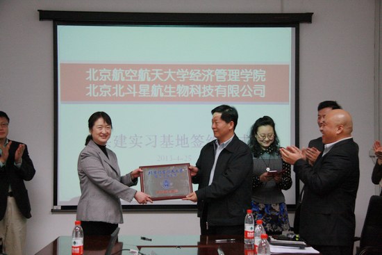 4月25日下午,beat365亚洲版官网和北京北斗星航生物科技有限公司关于共建实习基地的签约仪式在beat365亚洲版官网新主楼A612召开。出席会议的人员有beat365亚洲版官网院长王惠文教授、副院长方卫国教授、研究生指导主任、职业发展中心主任牟辉老师、EMBA中心副主任胡鹤老师以及北京北斗星航生物科技有限公司董事长刘世春先生、总经理兼执行董事刘召宏先生、副总经理张洪波先生、刘娜女士等公司主要董事监事人员以及股东。北航经管学院研究生指导主任牟晖老师主持了此次会议。