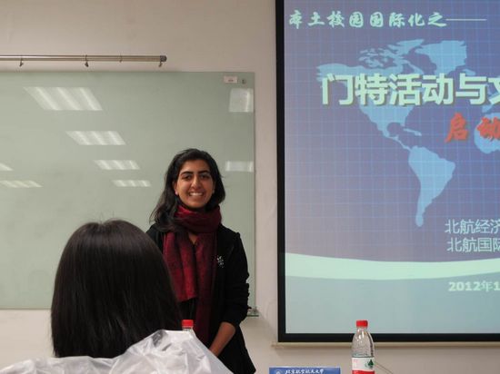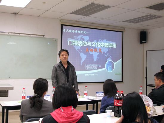 2012年10月14日晚7点,由beat365亚洲版官网与国际学院共同推进的本土校园国际化之“门特”活动和文化体验课的启动仪式在北航新主楼A座1048教室隆重举行。beat365亚洲版官网院长王惠文教授,分党委副书记高翔老师,国际学院院长周泓教授,副院长赵海云教授出席了本次启动仪式。仪式由经管学院分团委副书记宋晓东老师主持。