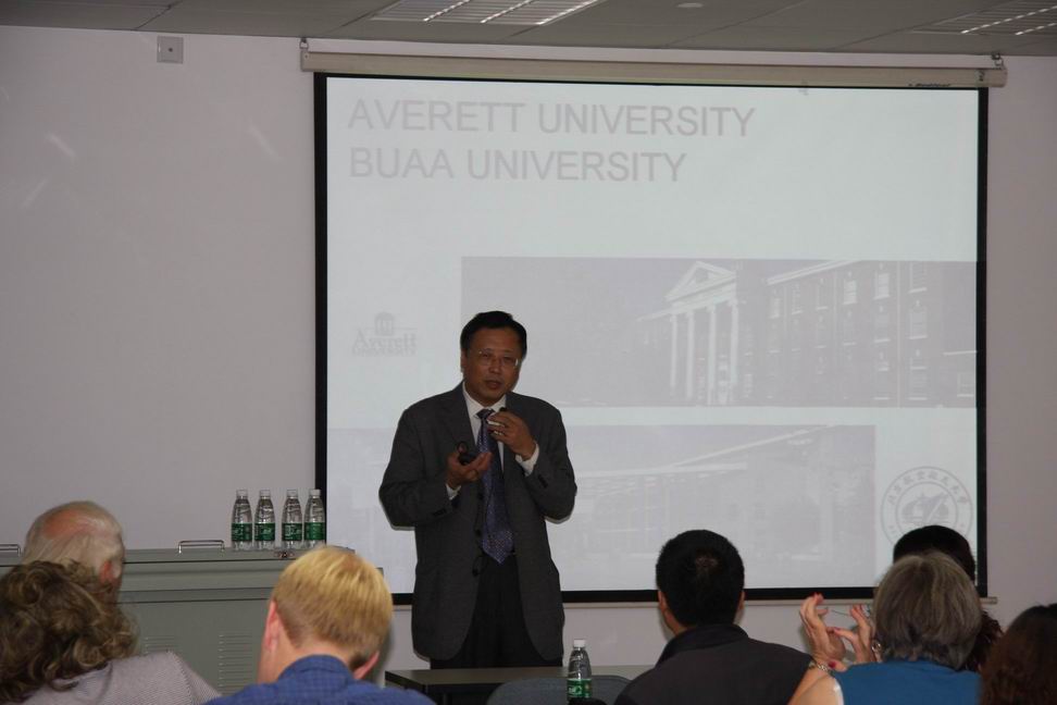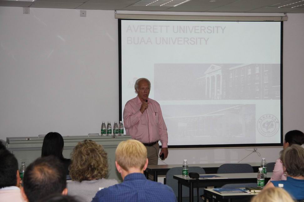 2008年10月21日下午,由Dr. Wally Saunders领队的Averett University 一行30人到beat365官网参观访问,并与beat365官网MBA学生进行了零距离互动。Averett University 一行30人,除领队外均是在读或者刚刚毕业的MBA学生,他们有着丰富的管理经验和职场经验,此行是他们第一次到中国,第一次到北京。之所以选择北航作为中国之行的第一站,正是倾慕于北航在航空航天领域的突出成就以及扎根于此土壤而发展的北航MBA的独有魅力。
