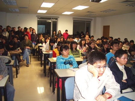 11月27日晚18:30在北航新主楼A1028教室,凯洛格公司高级合伙人王玥 先生亲临宣讲会,向与会同学介绍了凯洛格公司相关情况和发展动向,及招聘需求。整个会场座无虚席,盛况空前!同学们积极踊跃提问,提交了近百份应聘简历!