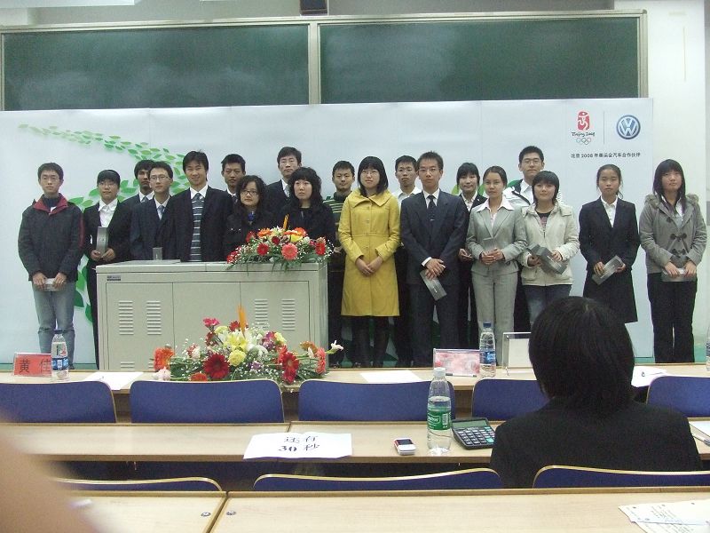之后所有选手来到台上,同评委老师合影留念。本次演讲比赛共历时两个小时,展现出了的当代北航大学生风采——德才兼备、知行合一,演讲比赛也使绿色奥运的概念深入人心,产生了积极的宣传作用。