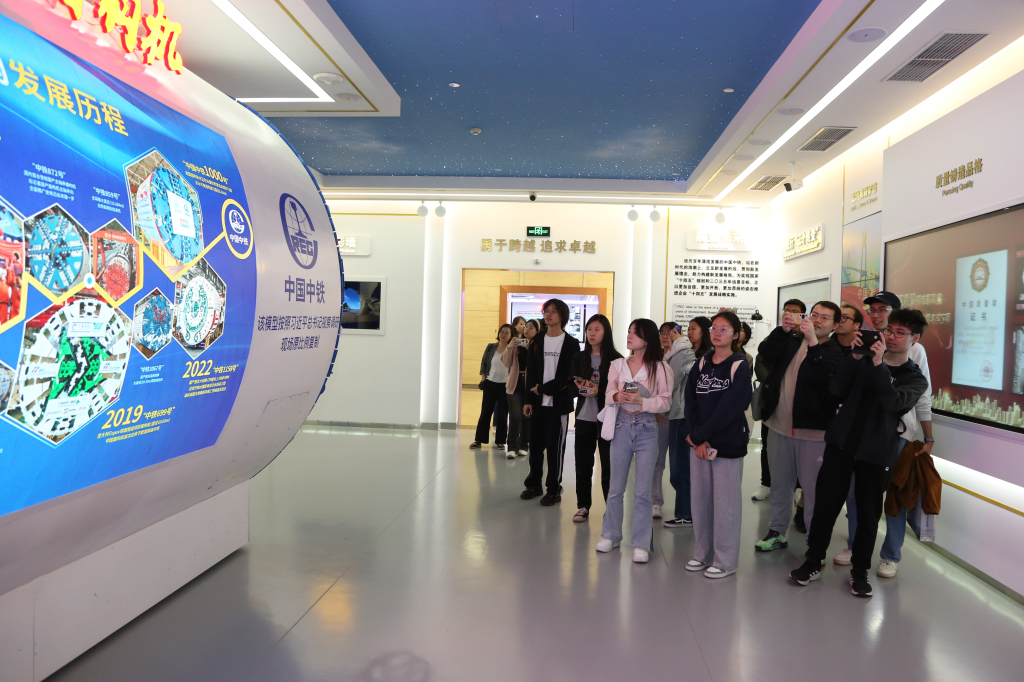 在讲解员的带领下,同学和老师们参观了中国中铁“开路先锋”文化展览馆,了解了中国中铁的发展、业务和成就,感受到了中国中铁的深厚底蕴和强劲实力,也为后续的交流活动打下了基础。