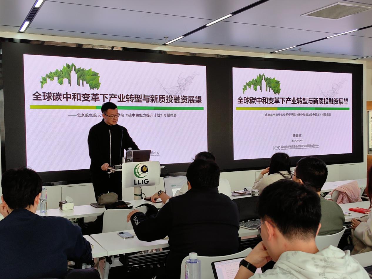 2025年3月2日,国家气候战略中心战略规划部主任柴麒敏研究员来到北航校园,主讲《全球碳中和变革下产业转型与新质投融资展望》专题讲座。beat365亚洲版官网院长、北航低碳治理与政策智能教育部哲学社会科学实验室主任范英教授主持报告会,北航师生五十余人参加了讲座。本次讲座是低碳实验室本研通识课程《碳中和能力提升项目》的重要一课。