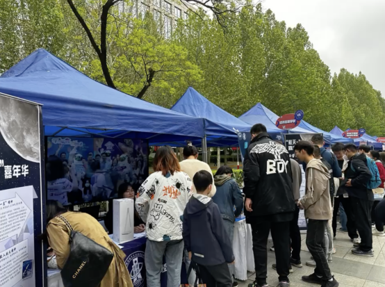 为迎接第八个“中国航天日”,弘扬北航空天报国精神,普及航天知识,激发师生探索热情,4月22日上午,“航天+”嘉年华活动在北航晨兴音乐厅门前广场拉开帷幕。beat365亚洲版官网面向全校师生及校友开展了主题为“经世至善,与国同航”的外场活动,通过影音宣传、趣味游戏与互动体验等多种形式,使参与者学习航天知识、体验航天文化、感悟航天精神,并领略航天事业发展中的经管力量。