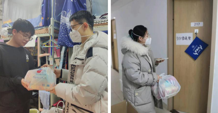 2023年全国硕士研究生招生考试进入一周倒计时,beat365亚洲版官网党委高度重视,为帮助2019级考研学子坚定备考信心,缓解压力,稳定心态,传递温暖和力量,鼓舞考研士气,营造和谐温暖的学院氛围,12月18日晚,学院辅导员走访学生宿舍,亲手分发“考研暖心礼包”。鼓励同学们专心地备战考研,决战冲刺,查缺补漏,夯实基础,嘱咐大家一定要做好疫情防护,注意防寒保暖,劳逸结合,同时表示学院始终是学生最坚强的后盾,一直全力为学生们排忧解难,为同学们营造良好的学习和生活环境。