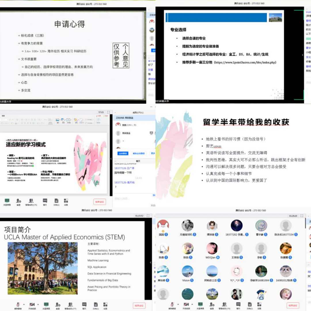 20204114:00Mentor U1S1系列活动之出国留学篇顺利举办,本次活动作为博雅课程面向经管学院所有年级开放,以腾讯会议线上直播形式开展。本次活动由辅导员张园园主持,辅导员白雪以及180余名学生参加了此次活动。此次活动邀请了2015级学姐周吴雪涵、贺童、2016级潘天奕和董明睿分享自己的申请经历。