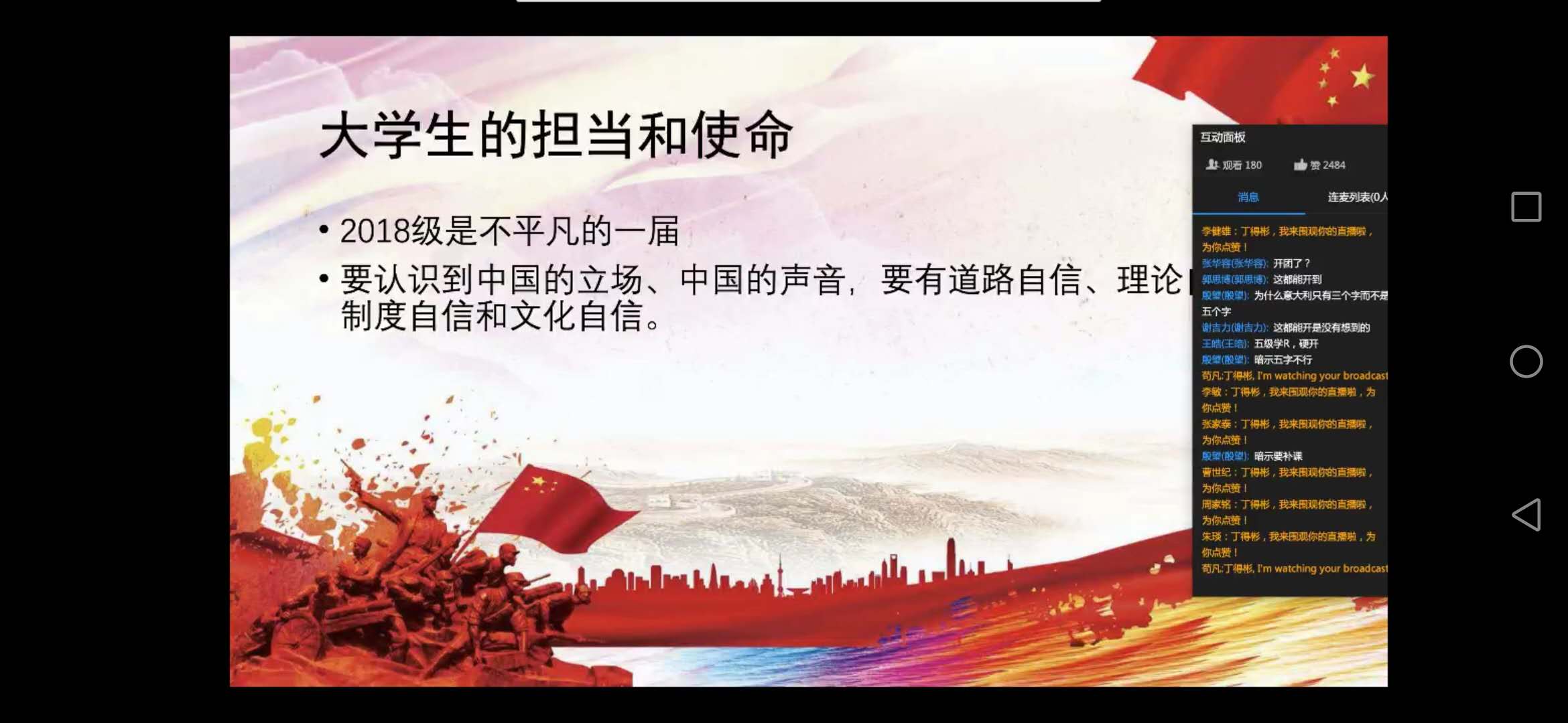 202031815:001808大班2020年春季学期第二次大班会顺利举办。本次大班会采取钉钉线上直播形式开展,大班会由辅导员丁得彬和辅导员张园园主持,主题是疾病防控·黎明前夕,1808大班全体同学参加了此次班会。