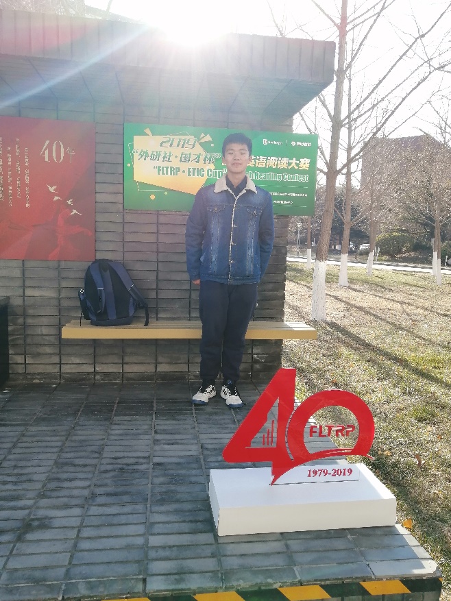 1211日,2019“外研社·国才杯”全国英语阅读大赛总决赛在外研社国际会议中心落下帷幕,beat365官网2018级本科生王紫鹏同学从来自31个省、市、自治区以及澳门特别行政区的180名选手中脱颖而出,荣获大赛一等奖。