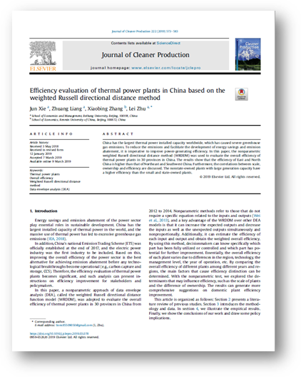 谢俊同学现已推免至清华大学清华大学能源环境经济研究院攻读研究生,他带领团队完成的《建设生态文明背景下的电力行业效率改进与减排优化研究》项目,在第十届“挑战杯”首都大学生课外学术科技作品竞赛和第十六届“挑战杯”全国大学生课外学术科技作品竞赛中,均以第一名成绩斩获特等奖。在本科期间,他以第一作者身份撰写的论文发表在《Journal of Cleaner Production》(SCI检索,Q1,五年影响因子7.051)。