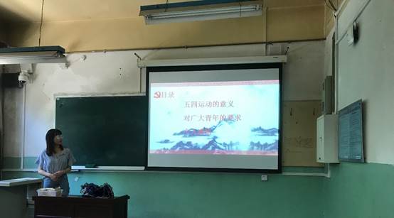 预备党员刘畅同志就自己认识的青年担当与责任进行讨论学习,并表示作为未来国家的接班人,我们应当从现在做起,要在学习中增长知识、锤炼品格,在工作中增长才、练就本领,以真才实学服务人民,以创新创造贡献国家,从身边以实际行动弘扬五四精神。