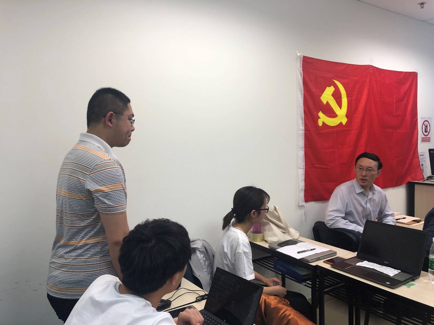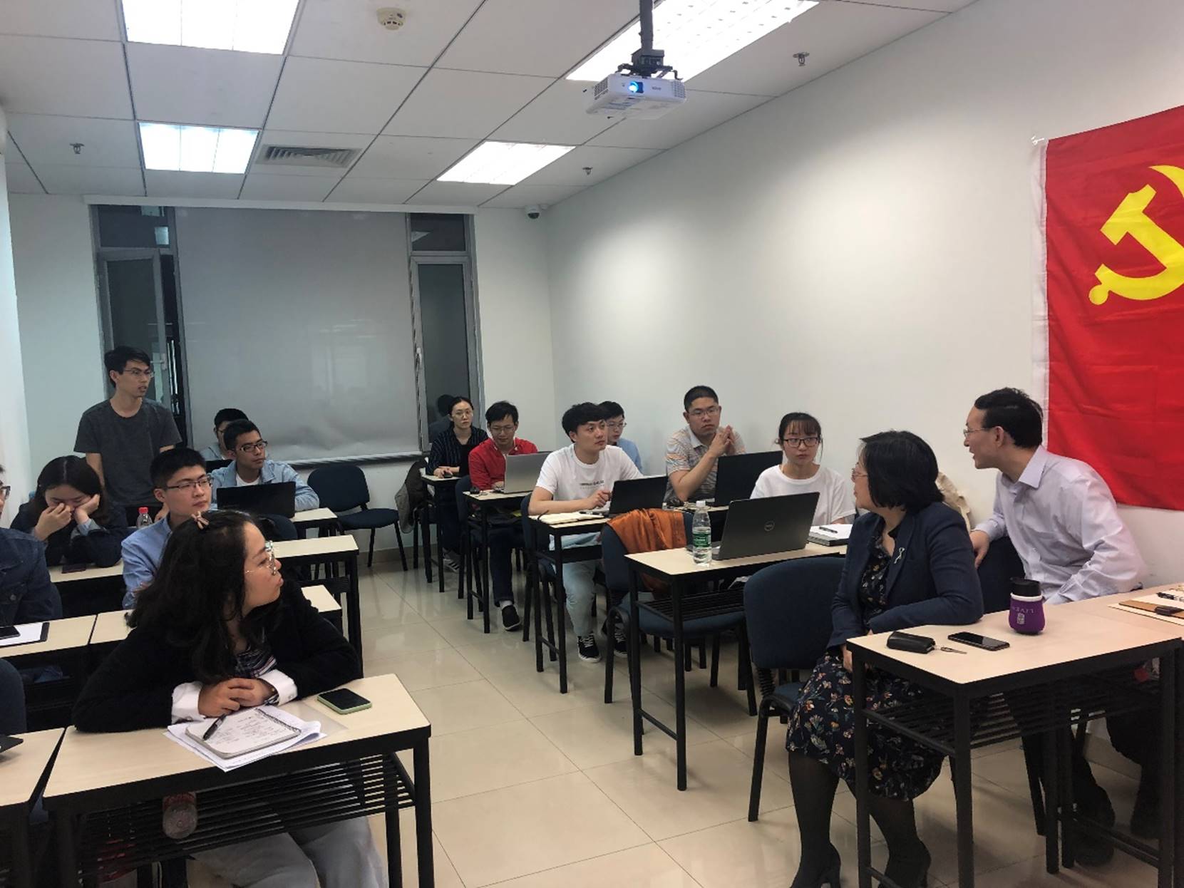 2019年4月22日19:00,本科大四党支部在新主楼A1038举办2019年4月份主题党日活动。本次会议由1508(一)支部支书丁宁同志主持,参加本次会议的有学院院长范英、副院长秦中峰、辅导员朱鹏宇、白雪和王文涛,以及本科大四党支部成员。会上秦中峰副院长做《国家监察体制改革》主题党课。