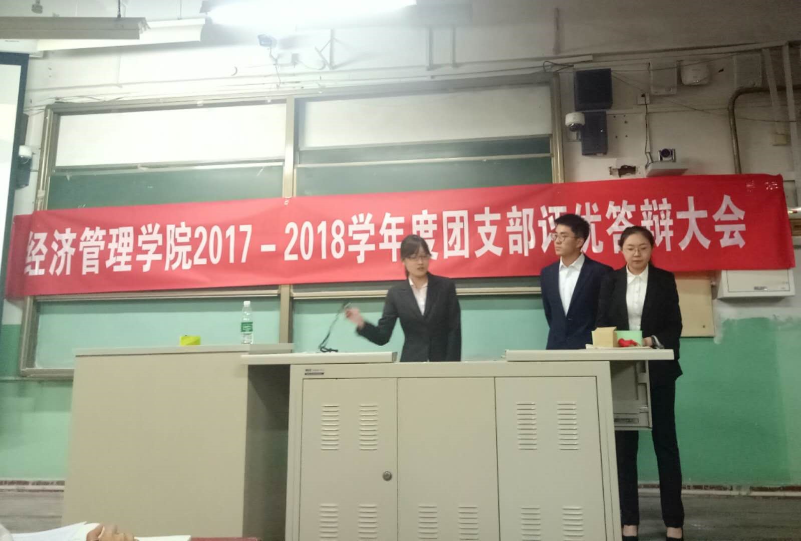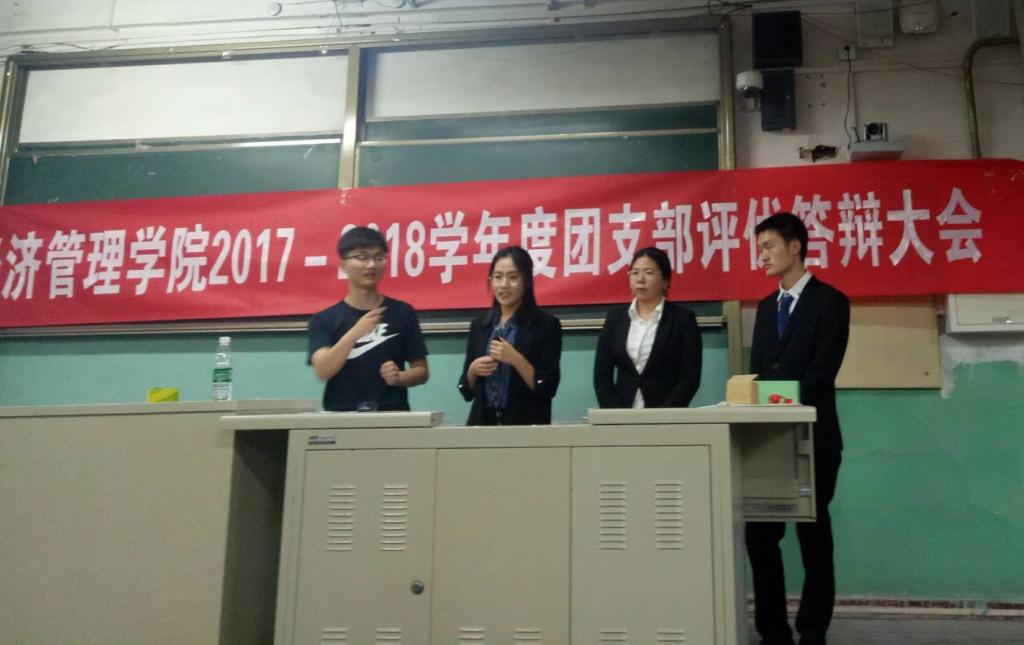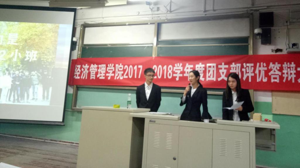 150811团支部首先进行了答辩。他们讲到,这一年同学们有更多的时间待在一起,建立了深厚的友谊;小班同学就学术沙龙、热点问题开展热烈讨论;支部成员积极参与支教,参加竞赛,让团支部学习氛围变得更加浓厚。