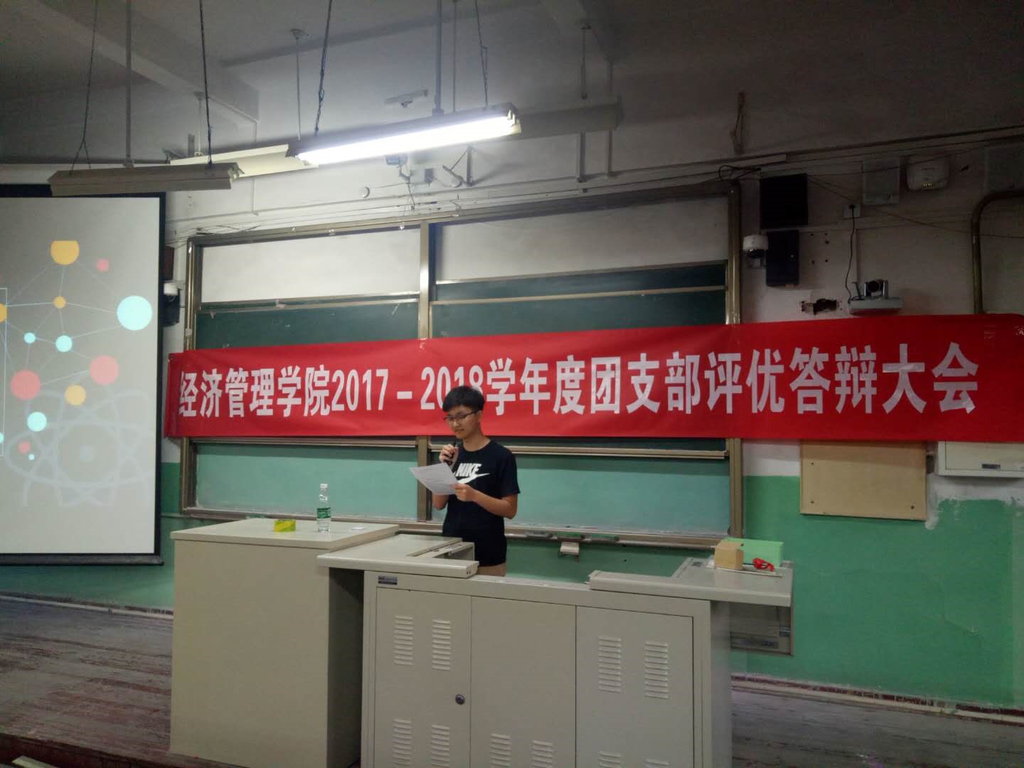 首先,1508大班团支书王劲奇同学对此次大会的目的和流程进行了简要介绍。此次答辩主要分为三个环节:第一环节,各团支部围绕支部文化建设、基础建设等内容进行展示汇报;第二环节,答辩代表随机从题库中抽选一题进行相应回答,该环节主要考察他们对于团的基础知识的掌握;第三环节,评委提问,就答辩过程中的疑问或者问题向答辩代表提问。最后,评委将综合各团支部答辩代表在各个环节的表现进行评分。随后,六个团支部依次进行答辩。