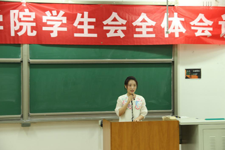 接下来,下一任轮值部长——文艺部部长郭雅雯发言,她介绍了经管学院近期主要活动,如新生舞会、新生杯篮球赛等活动的安排,并在最后欢迎各位干事们加入学生会。发言结束后,15级辅导员王晨对本次会议做出了总结,她表示十月任务繁重,期待大家的完美表现。