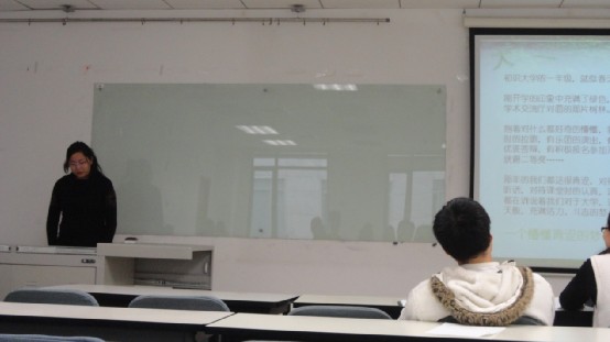 2012年12月5日下午,beat365亚洲版官网390831班在新主楼A928举行了思想政治答辩活动,在辅导员姜姗和邱冲的主持下,390831班全体同学一一上台,对四年的大学生活进行了回顾总结。