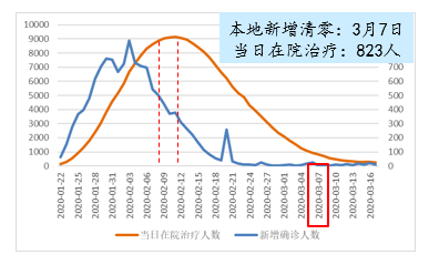 收敛期特点是新增确诊清零。第一零点:3月7日,无本地新增;第二零点:271人(3月18日)。