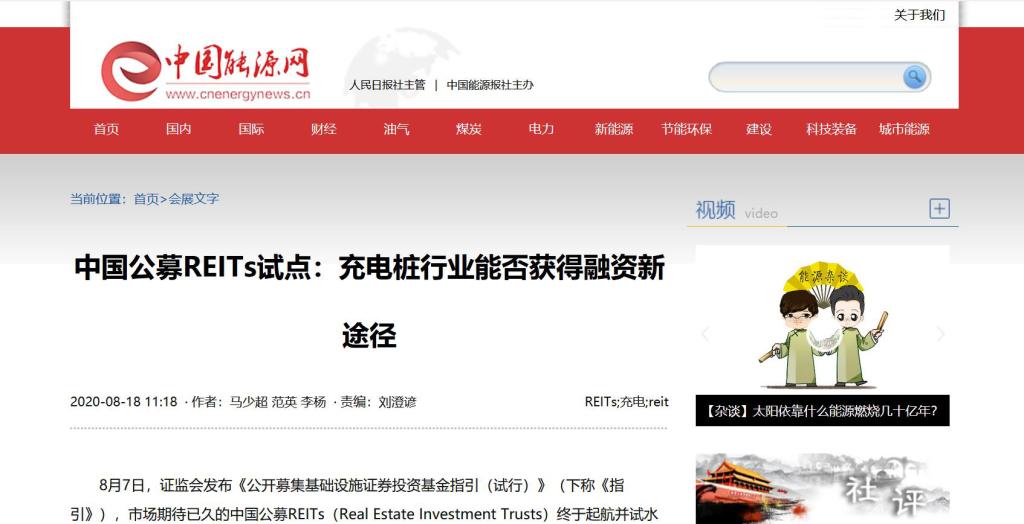 8月7日,中国证监会发布《公开募集基础设施证券投资基金指引(试行)》,市场期待已久的中国公募REITs(Real Estate Investment Trusts)终于起航并试水基础设施领域,这是我国资本市场的一项重大改革,也是我国实现经济绿色复苏的一项重要保障。beat365亚洲版官网院长范英教授在人民日报社主管的中国能源网发表文章认为,REITs试点将增加我国“两新一重”重点建设领域的融资渠道、提升企业资金流动性,为新能源汽车充电桩行业未来的发展提供了新的发展动力。同时,REITs也将为公众提供了全新的固定资产投资方向,吸纳民间资本促进经济内循环。