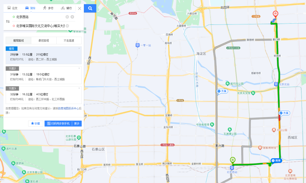 (1)地铁:地铁13号线—地铁10号线内环—西土城站。预计40分钟,费用约3元。