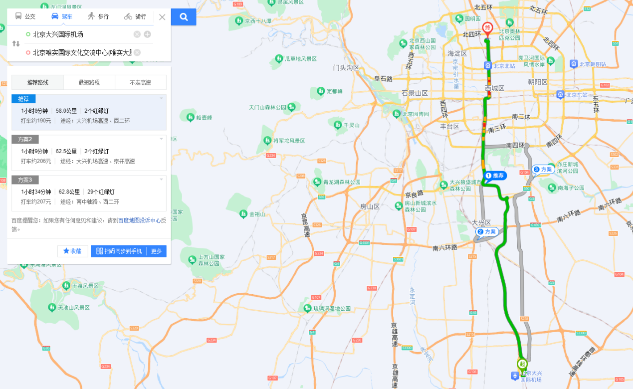 2、北京大兴国际机场→北京唯实国际文化交流中心