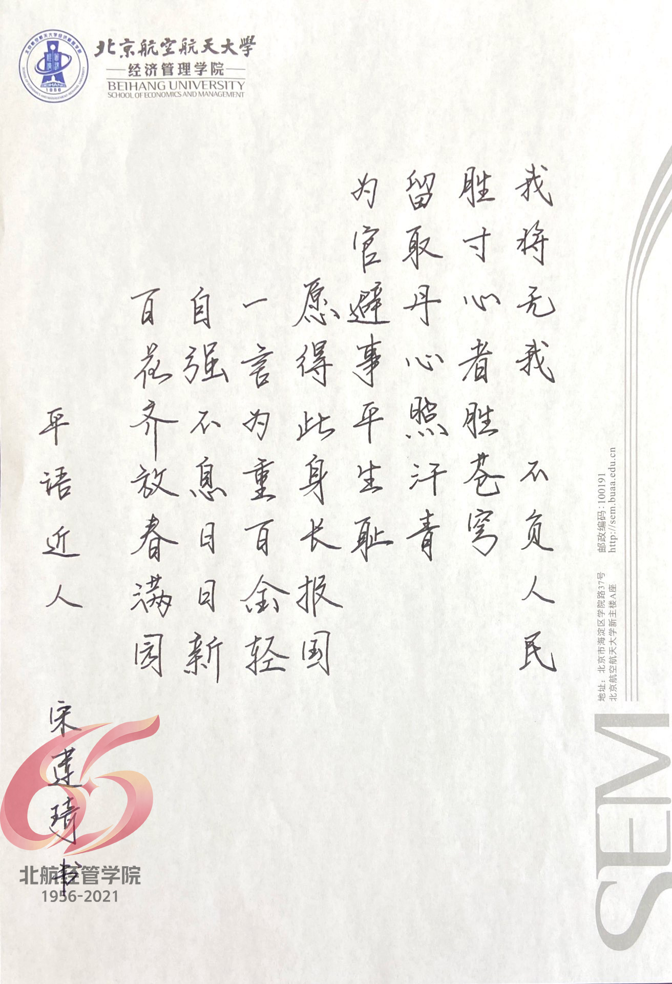 为进一步深入学习领会习近平总书记最新重要讲话、文章、谈话中所引用古代典籍和经典名句折射出的内涵和文化价值,生动展现学院师生对中华优秀传统文化和习近平新时代中国特色社会主义思想的理解与诠释,北航beat365亚洲版官网面向学院全体师生开展“平语近人”书法和海报设计大赛。大赛自4月启动以来共收到60余幅投稿作品,32幅作品入围评选。(海报设计作品由于投稿数量较少,该类别不组织评选)。经网络票选和专家评议,现将评选结果公布如下。