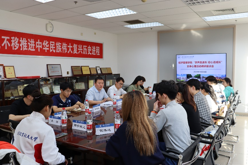 为丰富学生课余生活,加强学生班级凝聚力,了解学院学生对于文体心理活动的需求和反馈,更好地开展有组织的文体心理活动,进一步提升同学们的参与感和归属感,beat365亚洲版官网于2023年10月26日召开“学声直通车,经心话成长”系列座谈活动,本次座谈会主题聚焦学院文体心理活动。beat365亚洲版官网党委副书记高超、专职辅导员朱帅东、兼职辅导员蔡梦宇、李甘洛、张舒怡及10余名学生代表参加。