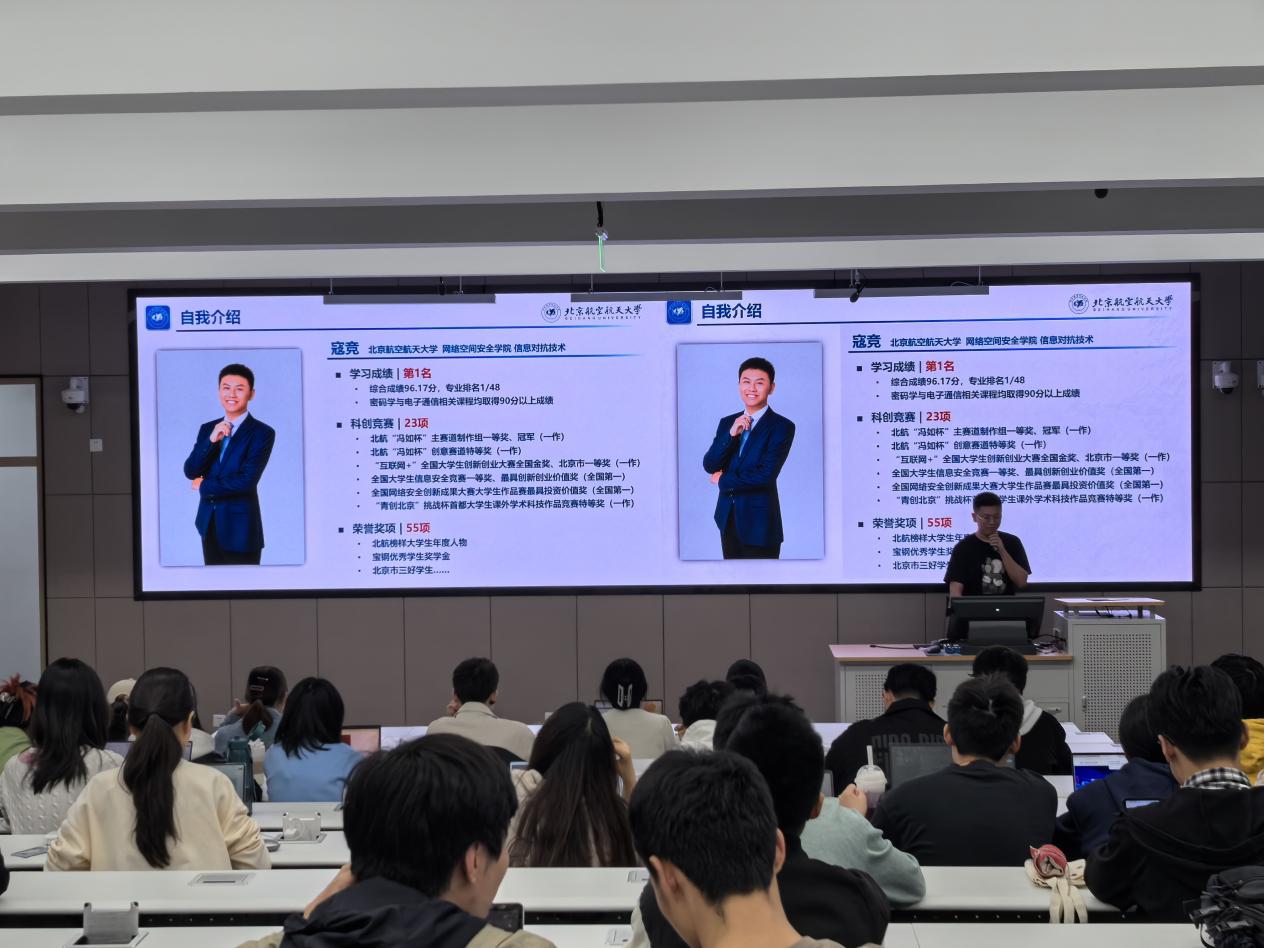 2024年3月31日周日晚19:30,beat365亚洲版官网在主楼201教室开展“科创领航——走进创新创业”宣讲活动。活动邀请 “互联网+”全国大学生创新创业大赛全国金奖、北京市一等奖(一作)得主寇竞分享创新创业竞赛的参赛经历与“冯如杯”参赛注意事项。寇竞从项目出发,针对故事、技术、商业和展示这四个维度,从个人角度出发对参赛项目的完整组成进行了详细解读,并针对如何准备“冯如杯”等科创竞赛进行了分享。