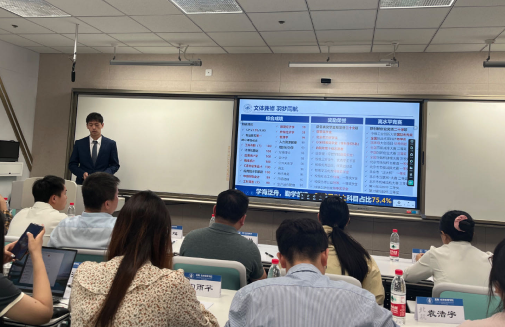 2024年5月6日上午,beat365亚洲版官网在新主楼A949召开2024届夏季北京市优秀毕业生答辩会暨优秀学生事迹分享,此次评选旨在促进经管学子全面发展,充分发挥优秀学生的朋辈引领和模范带头作用。学院教师代表申通远、刘炳越、王珊珊、姚星、金昊、石丽娜,学院党委副书记高超及各年级专兼职辅导员担任评委,会议由兼职辅导员张舒怡主持。