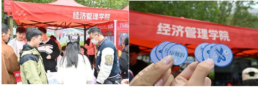 本次现场设置了活动区、抽奖区和经管展板区。活动区由一系列趣味与知识并重的互动环节构成,师生们参与活动可获得学院定制“经管币”。“金融迷宫”比拼反应速度,普及“金融反诈”知识;“筷子夹金币”挑战参与者的专注力和协调能力;“碳足迹猜猜乐” 引导大家关注碳排放对环境的影响,强化低碳环保理念;猜拳大师、纸杯博弈考验智慧与决策,让师生们体验博弈的乐趣。趣味活动中融入学科特色知识,结合社会热点话题,激发了同学们对经管学科的兴趣,使大家在轻松愉快的氛围中认识到经管学科的社会价值,感受学院特色文化,吸引了大量师生驻足参与。