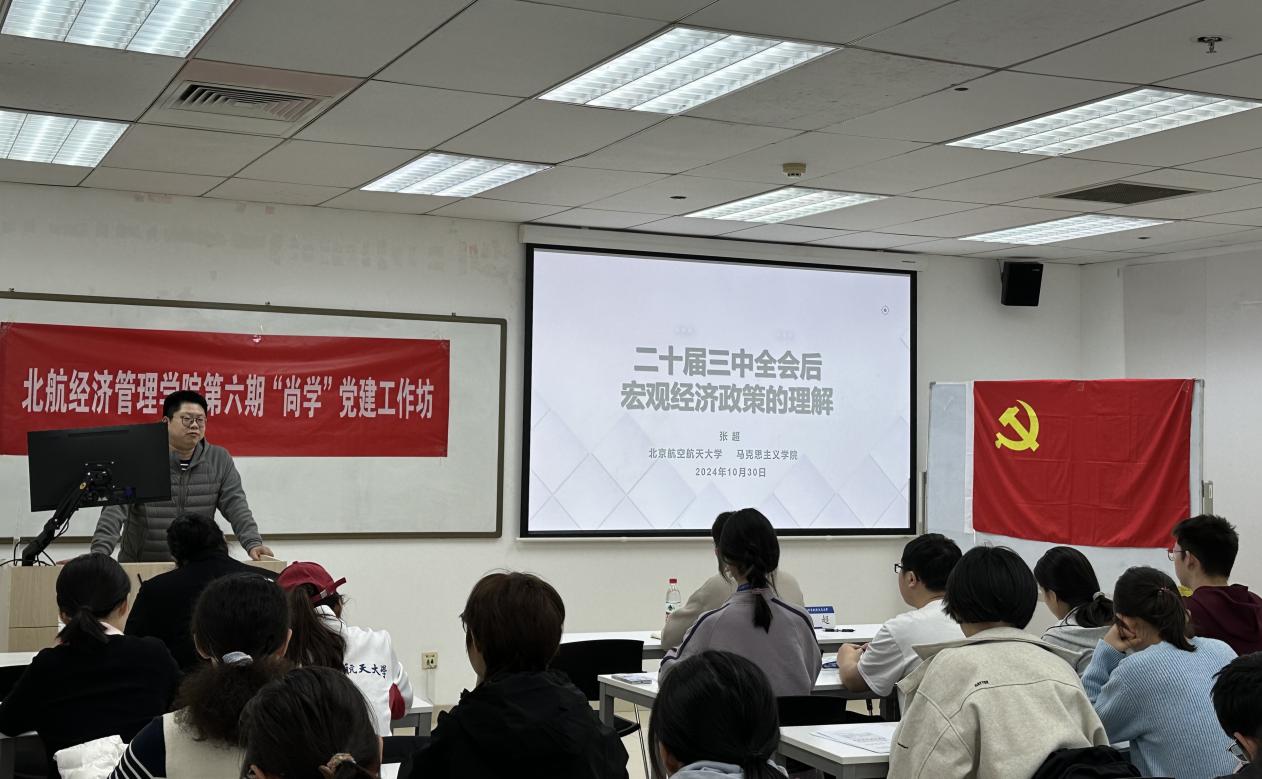 党课正式开始,马克思学院教师张超本次讲授党课的主题是《二十届三中全会后宏观经济政策的理解》。他解读了党的二十届三中全会通过的《中共中央关于进一步全面深化改革、推进中国式现代化的决定》,并与十八届三中全会的相关内容进行了对比分析。张超指出,在税收收入下降、城市间分化趋势加剧的背景下,中央将加大财政政策和货币政策的改革力度,在就业、民生保障和消费等重点领域,发挥国家的积极作用。同时,张超建议学员们坚持理论联系实际,用数据和科学说话,正视实际困难并解决实际困难。