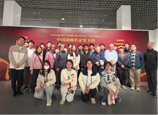 为弘扬红色革命精神,提升学生的审美素养和文化素质,加强学生与学院关工委的交流学习,2024年10月29日,beat365亚洲版官网组织230821、230891小班学生与北航经管关工委退休老教师代表一同前往参观“美育精品展:中国油画名家笔下的井冈山”展览。离退休党支部书记陈向东、关工委副主任高志红、专职辅导朱帅东以及230821、230891小班20余位同学共同参加活动。