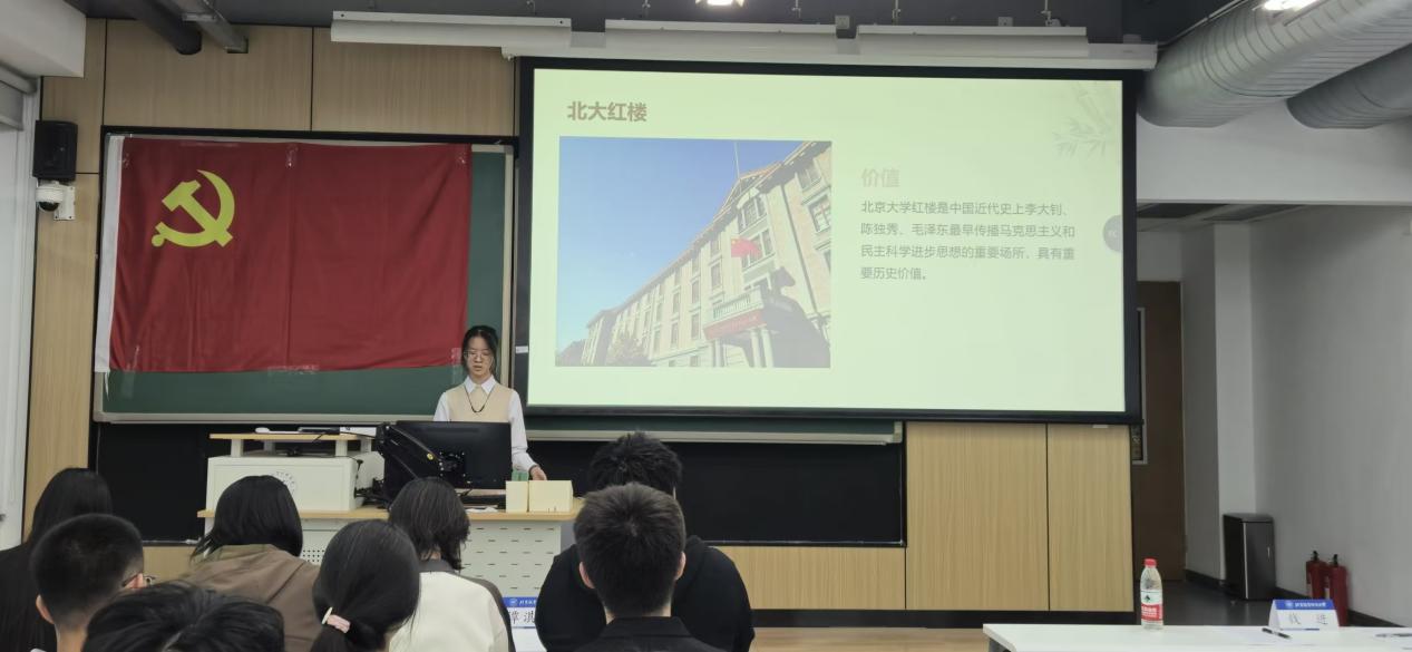 2小班实践地选在北大红楼,参观了包括《新青年》杂志、《我的马克思主义观》手稿等在内的珍贵展品,了解了新文化运动和五四运动的历史背景及意义。他们感悟到北大红楼作为马克思主义传播阵地的重要作用,并从中汲取了思想启蒙的力量。为了更好地展示实践成果,小班成员还录制了讲解视频,详细阐述了展品内容及其历史价值,这种形式使实践更加生动具体。