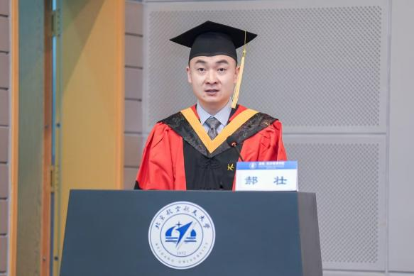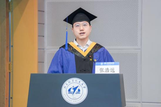 随后,全日制研究生代表张浩远和非全日制研究生代表姚鹤鹏,分别进行了发言,共同感恩学院提供的视野平台及导师的悉心教导,决心秉持赤子之心前行,投身于祖国建设,为时代进步添砖加瓦,在未来为母校增光添彩。