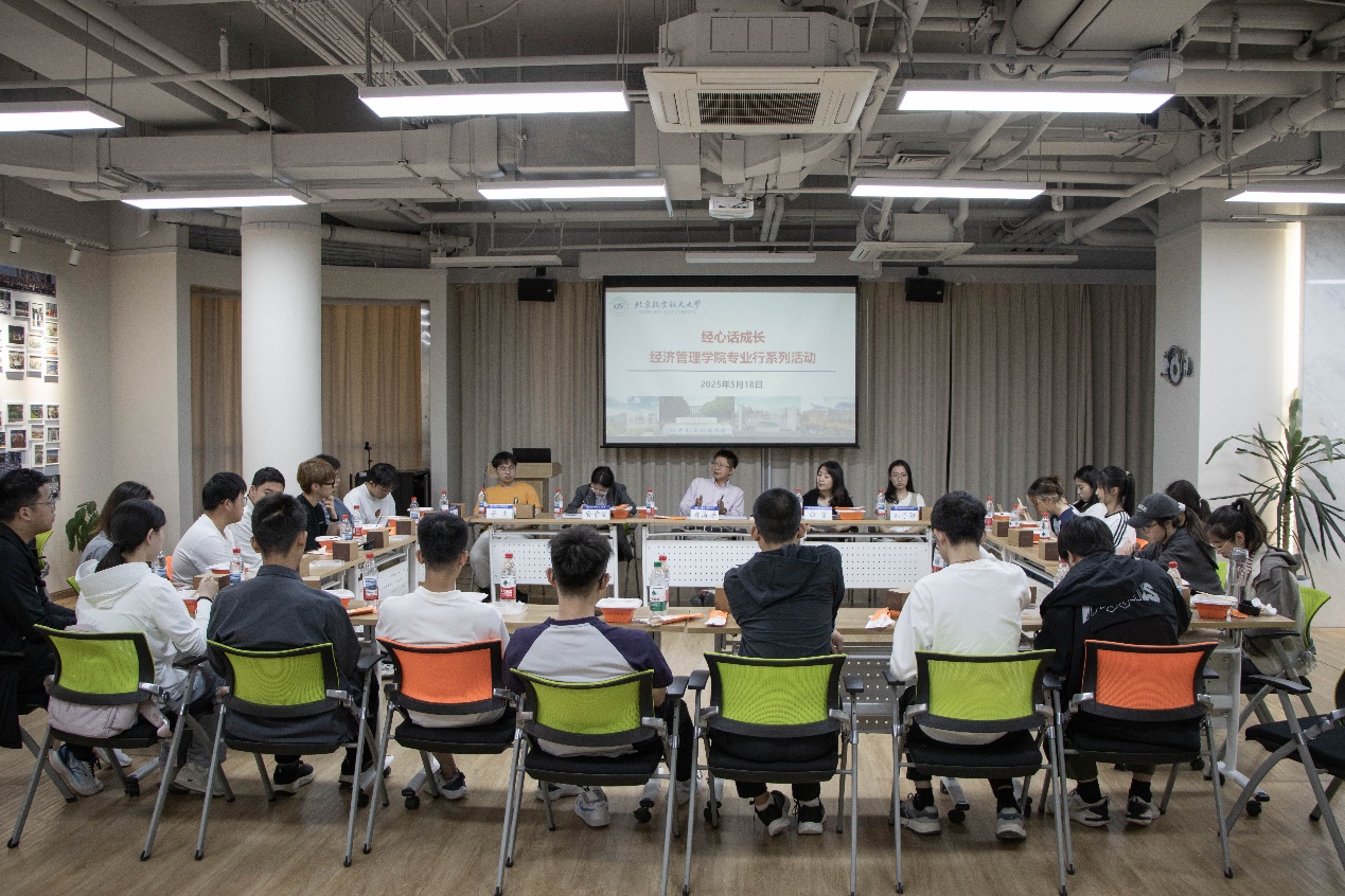 活动最后,学院朋辈代表结合自身经历,从学习体验、专业认知、竞赛科研、实习就业等多个维度出发,分享了在经管学院成长的切身感受和宝贵经验,为同学们的专业选择提供引导语启迪。