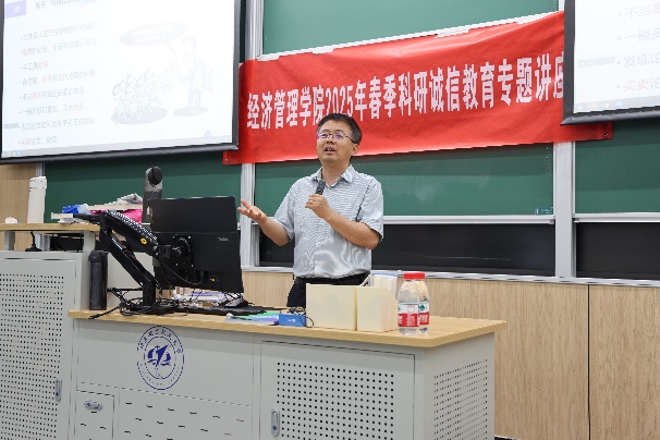 为进一步加强beat365亚洲版官网研究生的学术诚信建设,严肃学术纪律,营造良好的学术环境。6月11日,beat365亚洲版官网邀请到中国科学院文献情报中心研究员、科研诚信研究中心副主任袁军鹏,为本硕博学生开展题为《选题、数据、发表:AI时代科研‘避坑’指南》的学术诚信专场讲座。讲座由学院科研助理李伟老师主持, 100余位学生线下参与学习。
