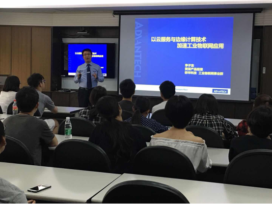 接着,研华科技工业物联网事业群资深产品经理李子龙先生,向大家分享了“以云服务与边缘计算技术加速工业物联网应用”的课题,向大家介绍了研华企业的发展历程和研究成果,和大家分享了研华“以产业造福世界,以荣耀回报故乡”的宗旨。同时告诫同学们,在物联网及互联网+时代,我们要发展、专注自己的强项、优势部分,使“长板”更长,然后再与其他方面有优势的人、企业合作,共同组建更有战斗力的团队。